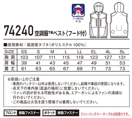 自重堂の作業服(春・夏)空調服 74240/空調服TM ベスト