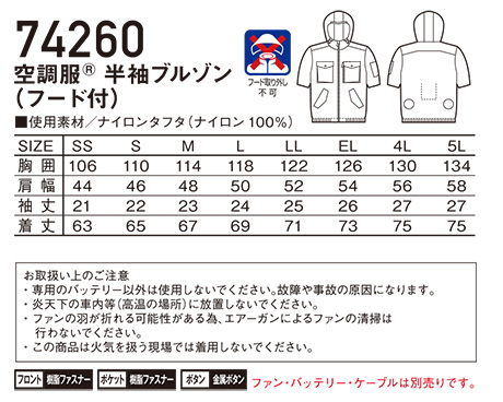 自重堂の作業服(春・夏)空調服 74260/空調服 半袖ブルゾン