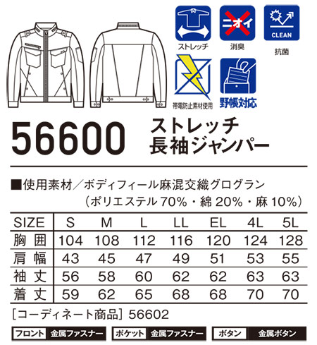 56600/ストレッチ長袖ジャンパー |