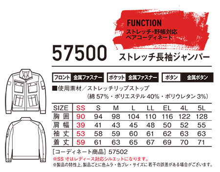 57500/ストレッチ長袖ジャンパー