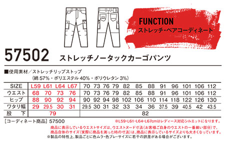 57502/ストレッチノータックカーゴパンツ