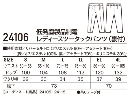 24106/低発塵製品制電レディースツータックパンツ(裏付) |