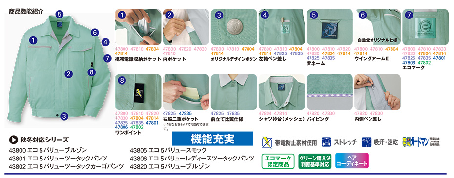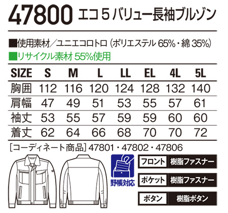 47800/エコ5バリュー長袖ブルゾン |