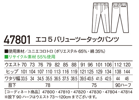 47801/エコ5バリューツータックパンツ |