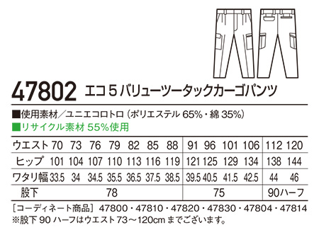 47802/エコ5バリューツータックカーゴパンツ |