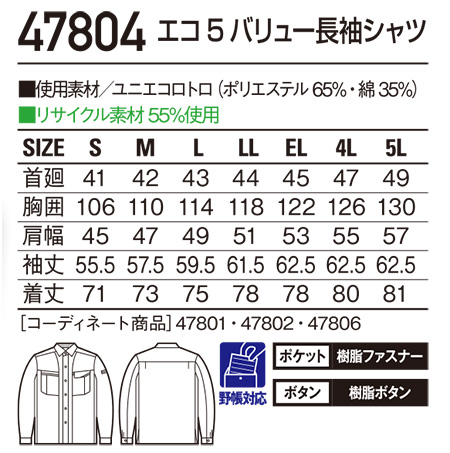 47804/エコ5バリュー長袖シャツ |
