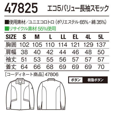 47825/エコ5バリュー長袖スモック |