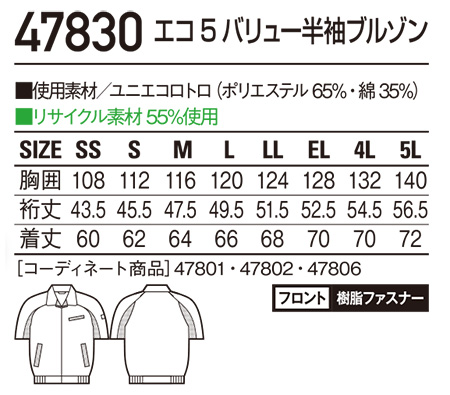 47830/エコ5バリュー半袖ブルゾン |