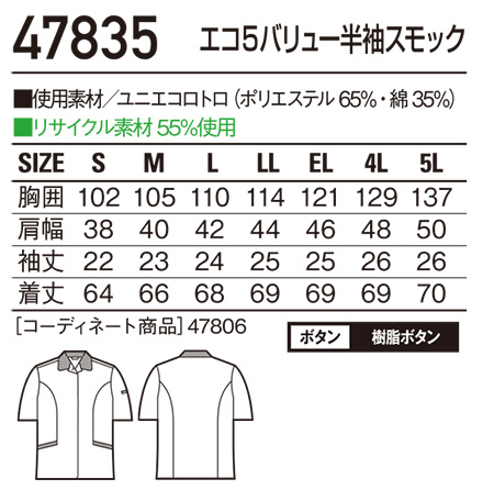 47833/エコ5バリュー半袖スモック |