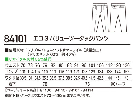 84101/エコ3バリューツータックパンツ |