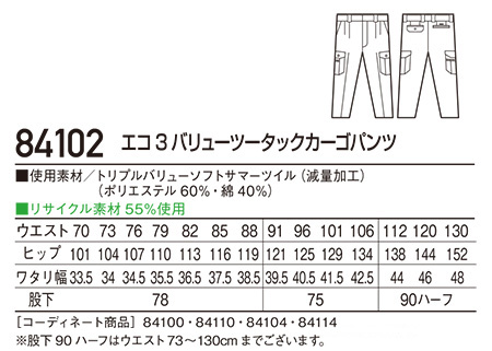 84102/エコ3バリューツータックカーゴパンツ |