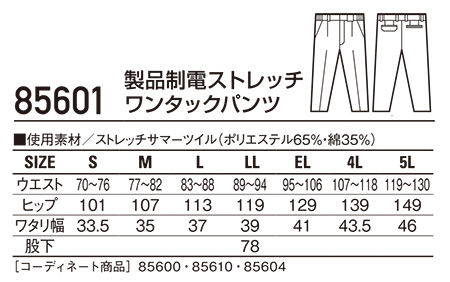 85602/製品制電ストレッチワンタックカーゴパンツ |