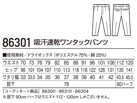 86301/吸汗速乾ワンタックパンツ |
