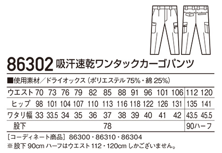 86302/吸汗速乾ワンタックカーゴパンツ |