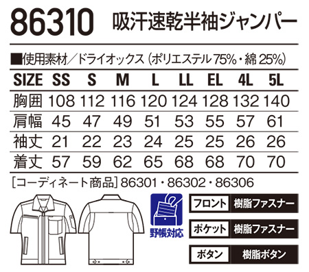 86310/吸汗速乾半袖ジャンパー |