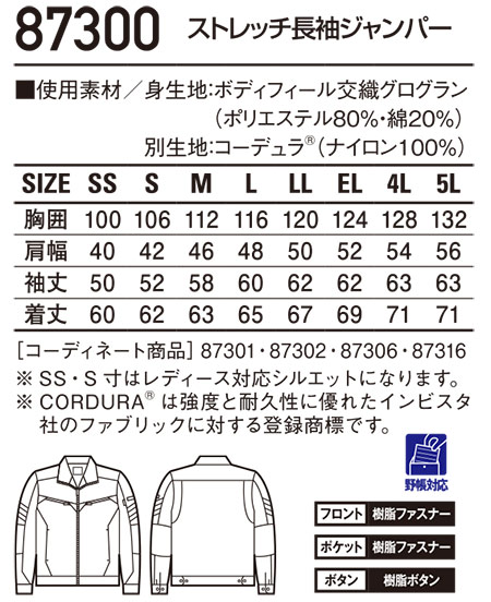 87300/ストレッチ長袖ジャンパー |