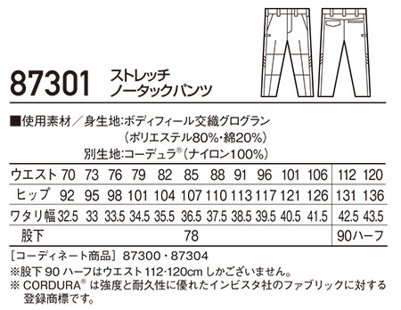 87301/ストレッチノータックパンツ |