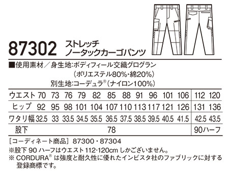 87302/ストレッチノータックカーゴパンツ |