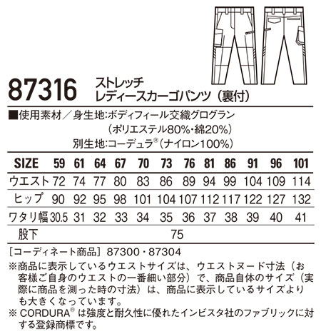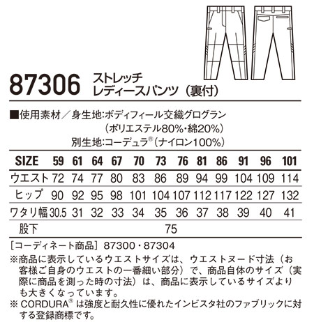 87306/ストレッチレディースパンツ(裏付) |