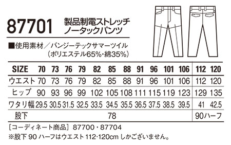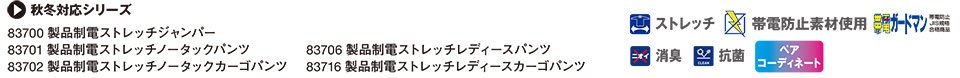 87702/製品制電ストレッチノータックカーゴパンツ |