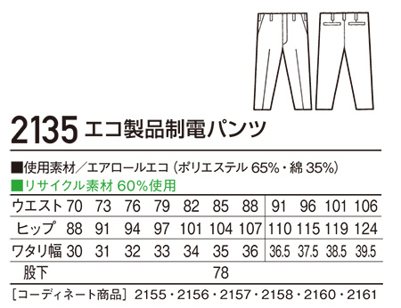 2135/エコ製品制電パンツ |