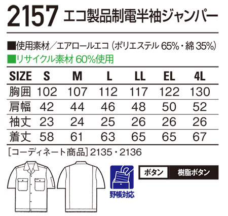2157/エコ製品制電半袖ジャンパー |