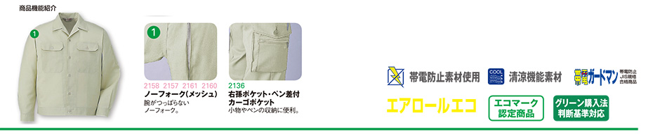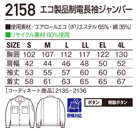 2158/エコ製品制電長袖ジャンパー |