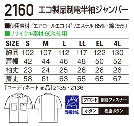 2160/エコ製品制電半袖ジャンパー |