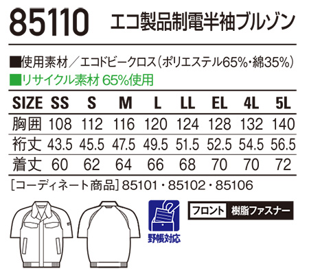 85110/エコ製品制電半袖ブルゾン |