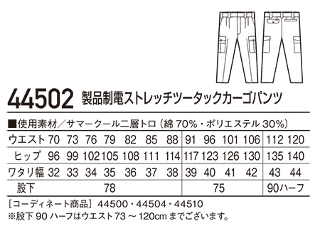 44502/製品制電ストレッチツータックカーゴパンツ |