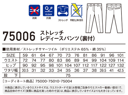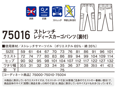 75016/ストレッチレディースカーゴパンツ(裏付) |