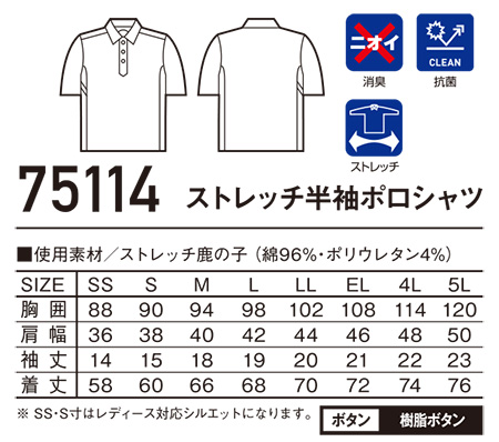 自重堂の作業服(春・夏)ワークウェア 75114/ストレッチ半袖ポロシャツ