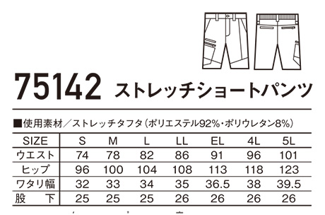 自重堂の作業服(春・夏)ワークウェア 75142/ストレッチショートパンツ