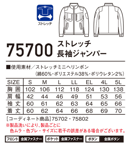 75700/ストレッチ長袖ジャンパー |