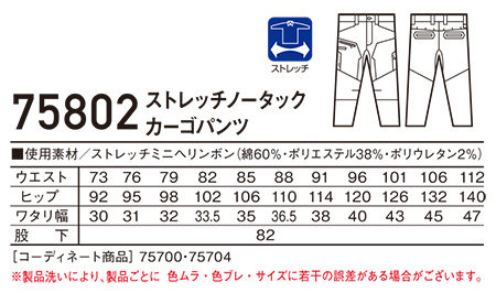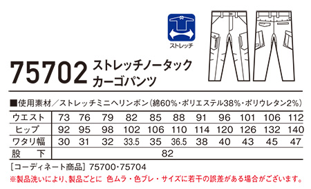 75702・75802/ストレッチノータックカーゴパンツ |