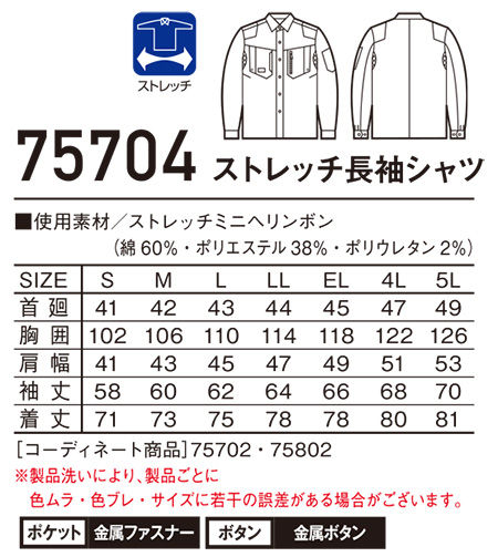 75704/ストレッチ長袖シャツ |