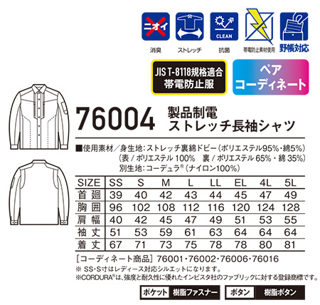 76004/製品制電ストレッチ長袖シャツ |