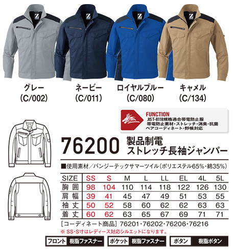 76200/製品制電ストレッチ長袖ジャンパー |