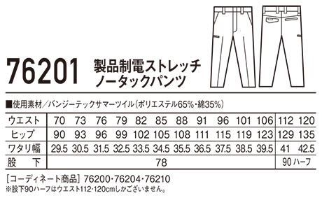 76201/製品制電ストレッチノータックパンツ |