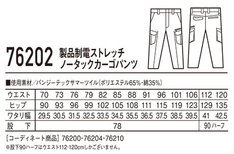 76202/製品制電ストレッチノータックカーゴパンツ |