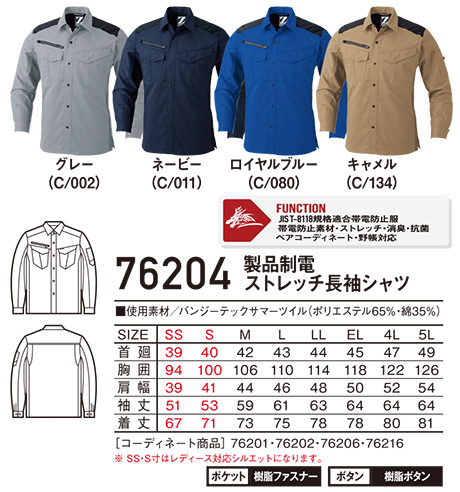76204/製品制電ストレッチ長袖シャツ |