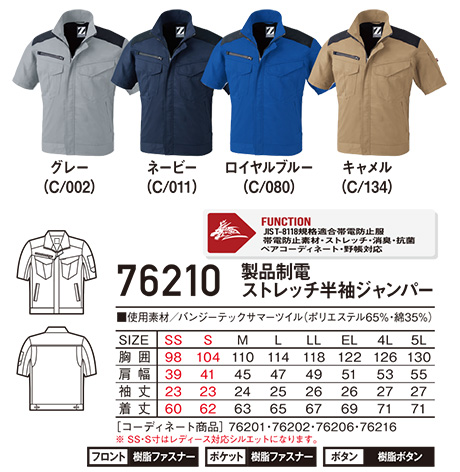 76210/製品制電ストレッチ半袖ジャンパー |
