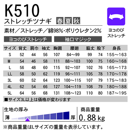 KURE 「クレヒフク(kurehifuku)」オールシーズン オーバーオールウェア(OVER-ALL WEAR) K510/ストレッチツナギ