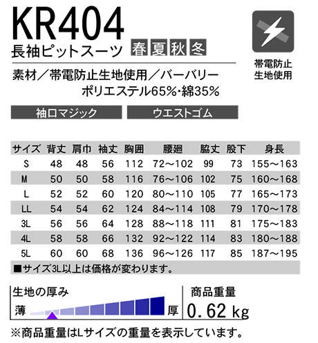 KURE 「クレヒフク(kurehifuku)」オールシーズン オーバーオールウェア(OVER-ALL WEAR) KR404/長袖ピットスーツ