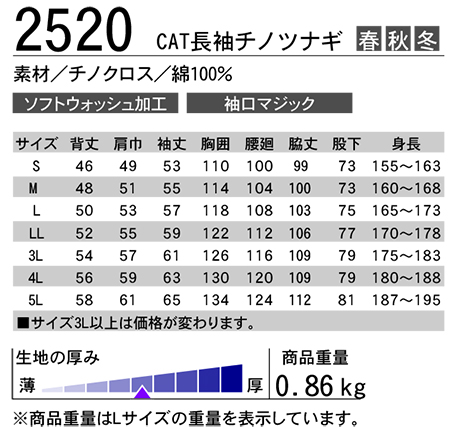 CAT長袖チノツナギ/2520