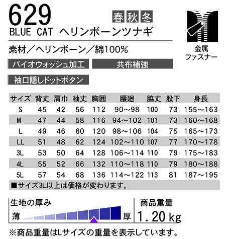 品名 BLUE CATヘリンボーンツナギ(廃番予定品)
