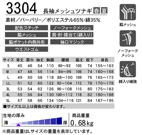 長袖メッシュツナギ/3304