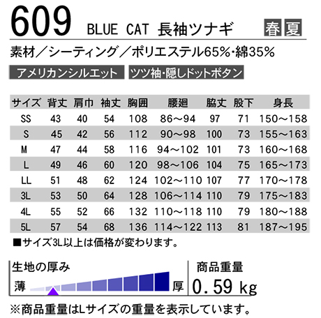 KURE 「クレヒフク(kurehifuku)」春・夏 オーバーオールウェア(OVER-ALL WEAR) 609/BLUE CAT長袖ツナギ