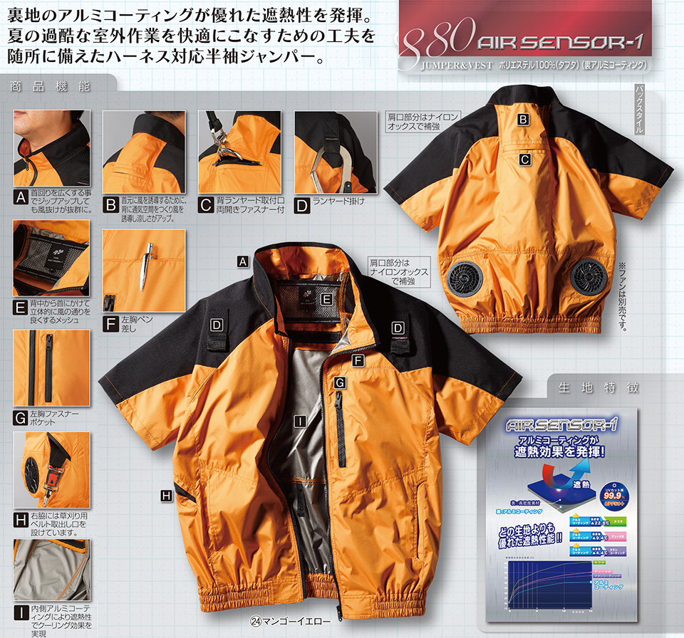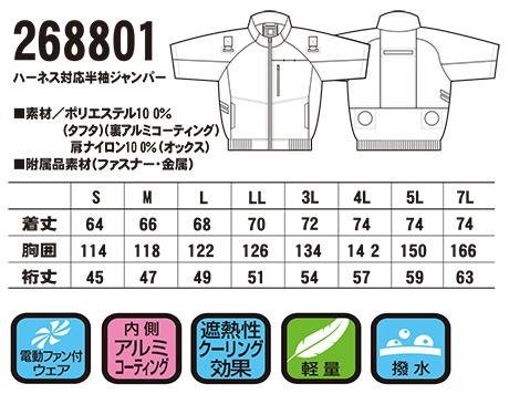 268801/エアセンサー-1 ハーネス対応半袖ジャンパー |