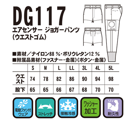 DG117/エアセンサー ジョガーパンツ(ウエストゴム)